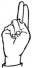 На ћирилици написано ВУКОСАВ ГЛАВОЊИЋ састоји се из 15 слова [?]. Исписано ћириличном једноручном азбуком за глувонеме: